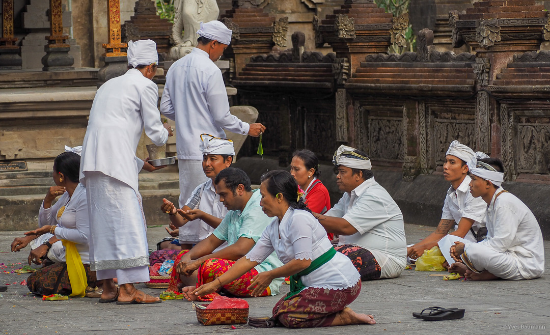 Il est important de savoir que l’île de Bali est la seule île de l’Indonésie qui n’est pas majoritairement musulmane. En effet, les Balinais sont principalement de religion hindoue. Fidèles à leur religion très pacifiste, les hindoues se doivent de créer un temple dans chacune de leur terre. Donc pour chaque maison, hôtel ou restaurant construits sur cette île, un petit temple est aussi créé. C’est à ce temple qu’ils viennent faire leur offrande trois fois par jour. Cela donne un décor réellement unique aux villes de cette île paradisiaque.