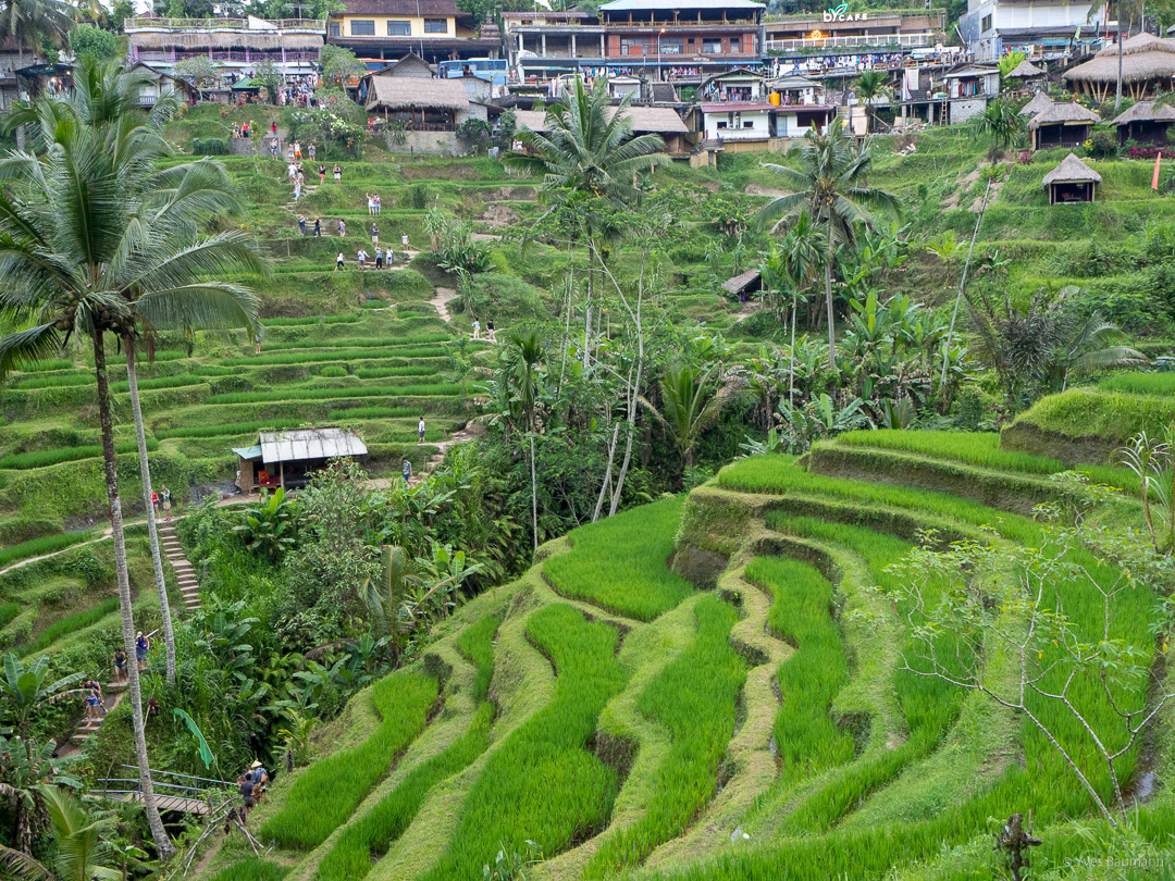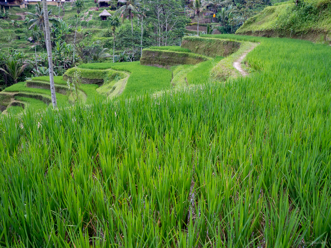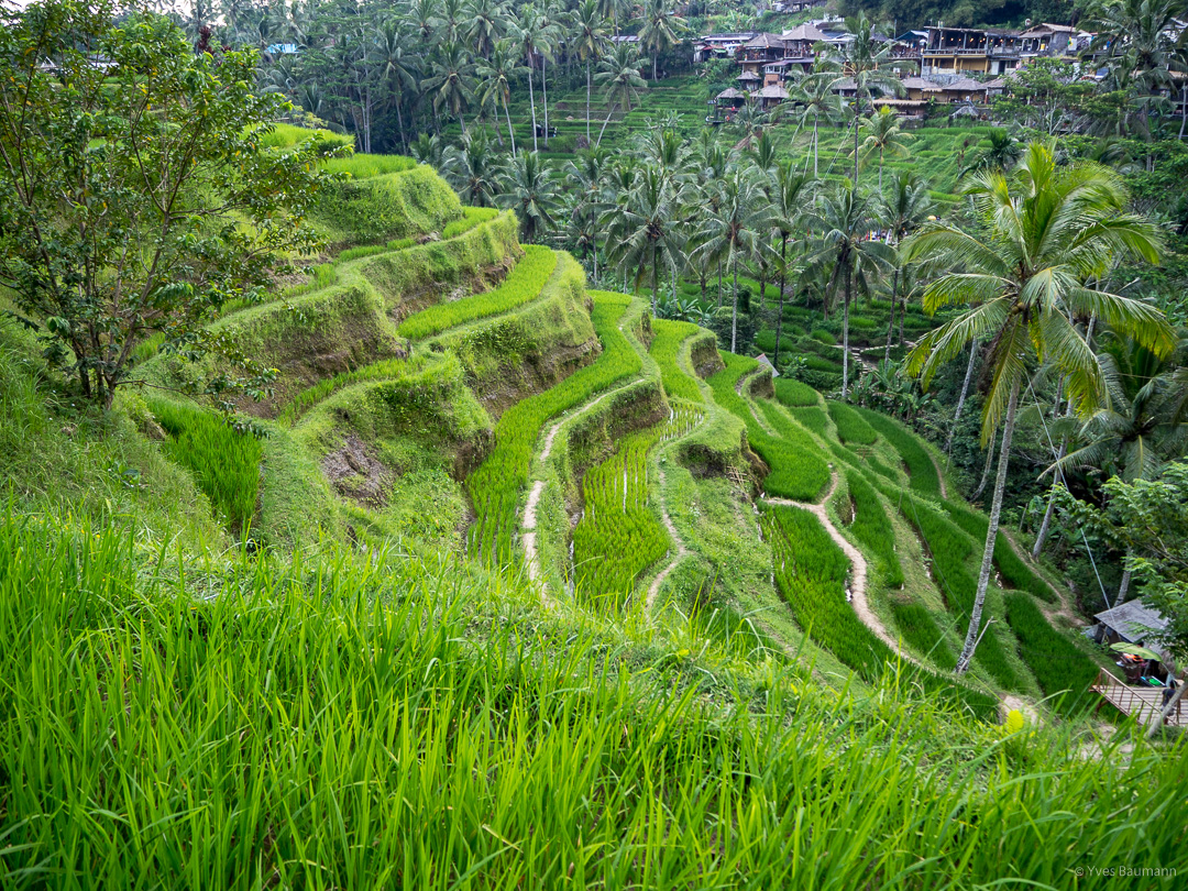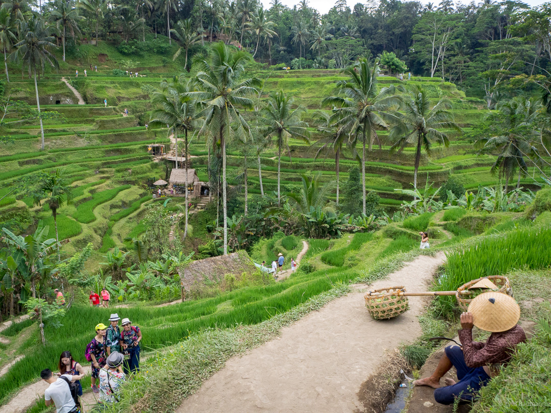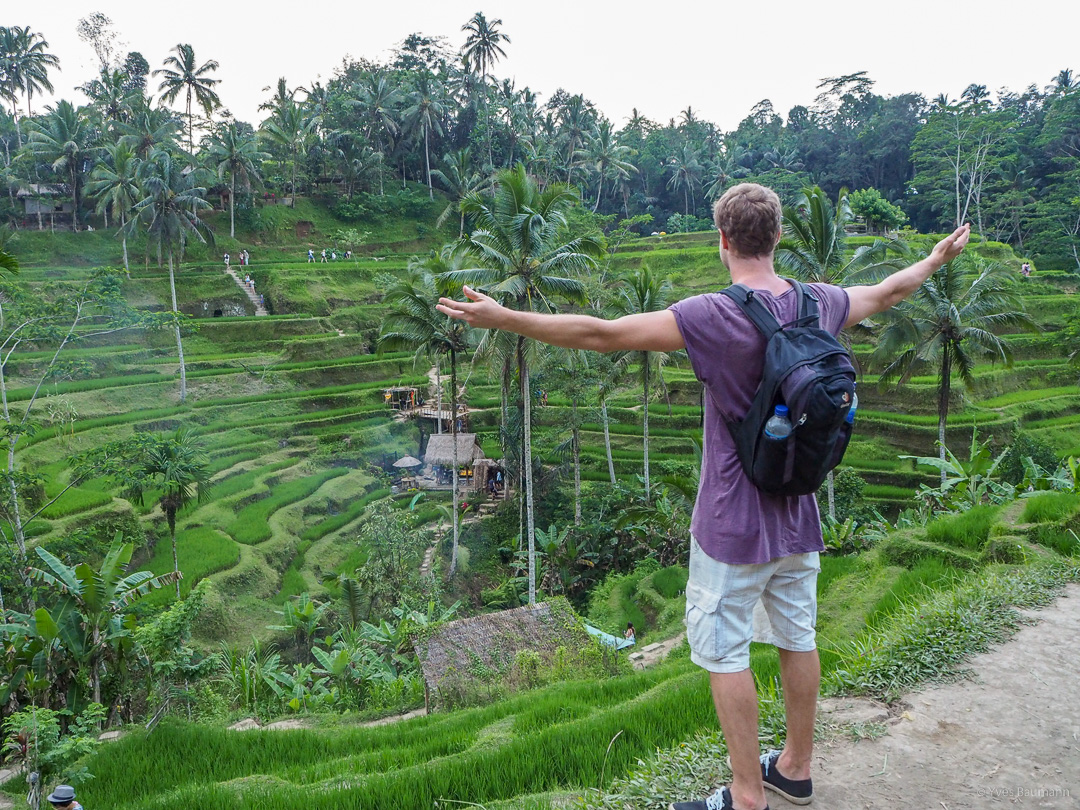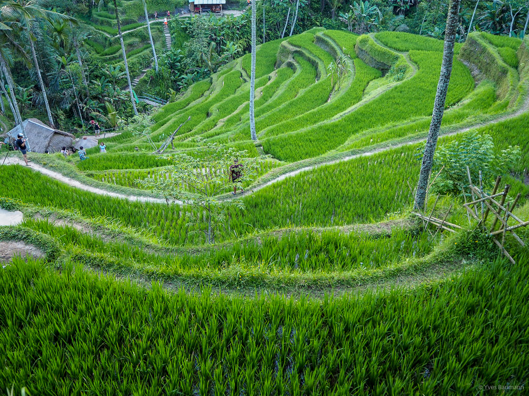 Pour finir notre journée, les célèbres rizières d’Ubud nous attendaient. Approchant le coucher de soleil, c’était le moment idéal pour faire de magnifiques photos. On a cependant été déçu par cette dernière étape. En effet, le guide nous a bien entendu emmenés dans un lieu ultra touristique, qui perd, de ce fait énormément en authenticité et donc en intérêt. Je vous conseillerais plutôt de louer un scooter et de faire votre tour vous-même en cherchant à vous poser proche de vraies rizières pour admirer le soleil de coucher paisiblement. 😉