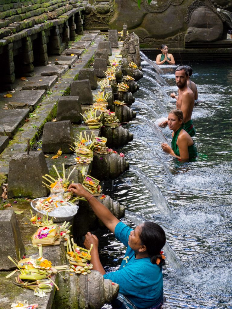 Le temple de Tirta Empul est quant à lui beaucoup plus intéressant. Les gens y viennent pour prier, pour se purifier, pour y faire des offrandes, ou simplement par curiosité, comme nous. 🙂